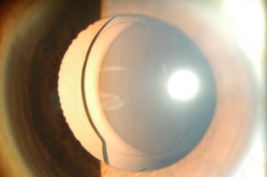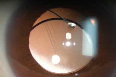 白内障手術後時間が経過すると、まれに(100人中1人程度)手術で固定した眼内レンズがずれたり外れたりすることがあります。周りの組織が加齢とともに弱くなることが原因です。その他に打撲などの外傷、強い近視、ぶどう膜炎などの炎症、網膜硝子体手術など他の手術の既往があるとレンズを支えている組織が弱くなることがあります。症状として、視力低下、二重に見えることや見え方が変わる(目の中でずれたレンズが動く)ことがあります。